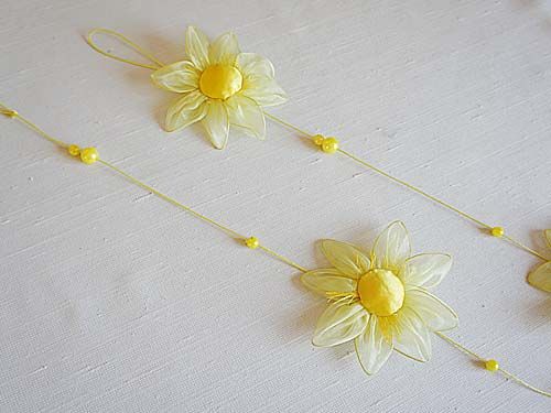 Декоративную нить с цветами можно использовать как подвес и как гирлянду, что очень удобно благодаря наличию петелек для закрепления на обоих концах изделия.
