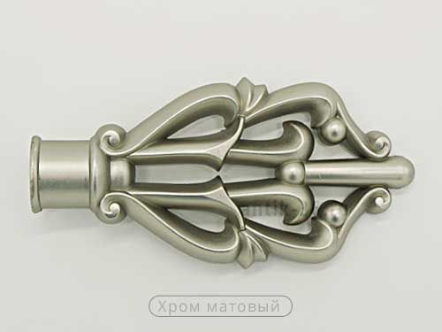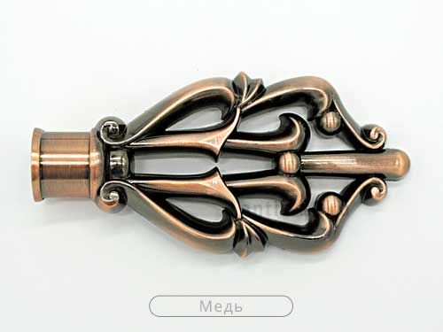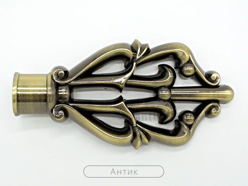 Металлический наконечник "Дамаск" отличается большой величиной удлинения карниза. Особенности дизайна - мотив на основе завитков - делает его отличным дополнением к портьерам с завитками, которые нравятся очень многим людям.