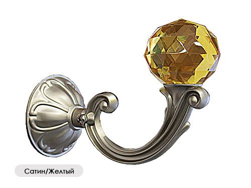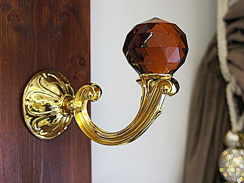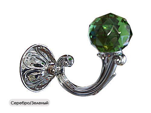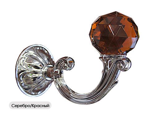 Держатель для штор с круглым прозрачным или цветным кристаллом обладает большой величиной выноса от стены - 12 см. Подходит для оформления интерьера совместно с тяжелыми портьерами, хорошо комбинируется с круглыми карнизами диаметров 19 мм и 25 мм и наконечниками "Шар", "Кула-кристал", "Шар-стекло" и другими подобными формами.