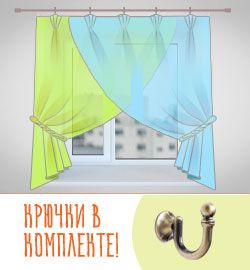 Специальное "Готовое предложение" - это выгодные цены на комплекты штор и аксессуары от наших дизайнеров. Вы можете заказать пошив занавесок из вуали и органзы по готовым эскизам с уже известной ценой. Все честно и удобно! К некоторым моделям в комплекте идут аксессуары - крючки и подхватики. Все шторы просчитаны в 2-х размерах: базовом и дополнительном, а также с учетом рекомендуемых карнизов и без них.