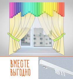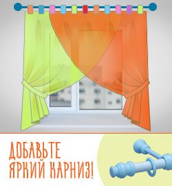 Опционный карниз: круглопалочный карниз, ярких цветов — желтый, синий
