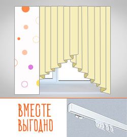 штора сложного кроя, из 2-х текстильных элементов: тюля с изгибом (1 шт) и ассиметричного ламбрекена(1 шт)