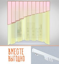 штора сложного кроя, из 3х текстильных элементов с краями, обработанными московским швом: